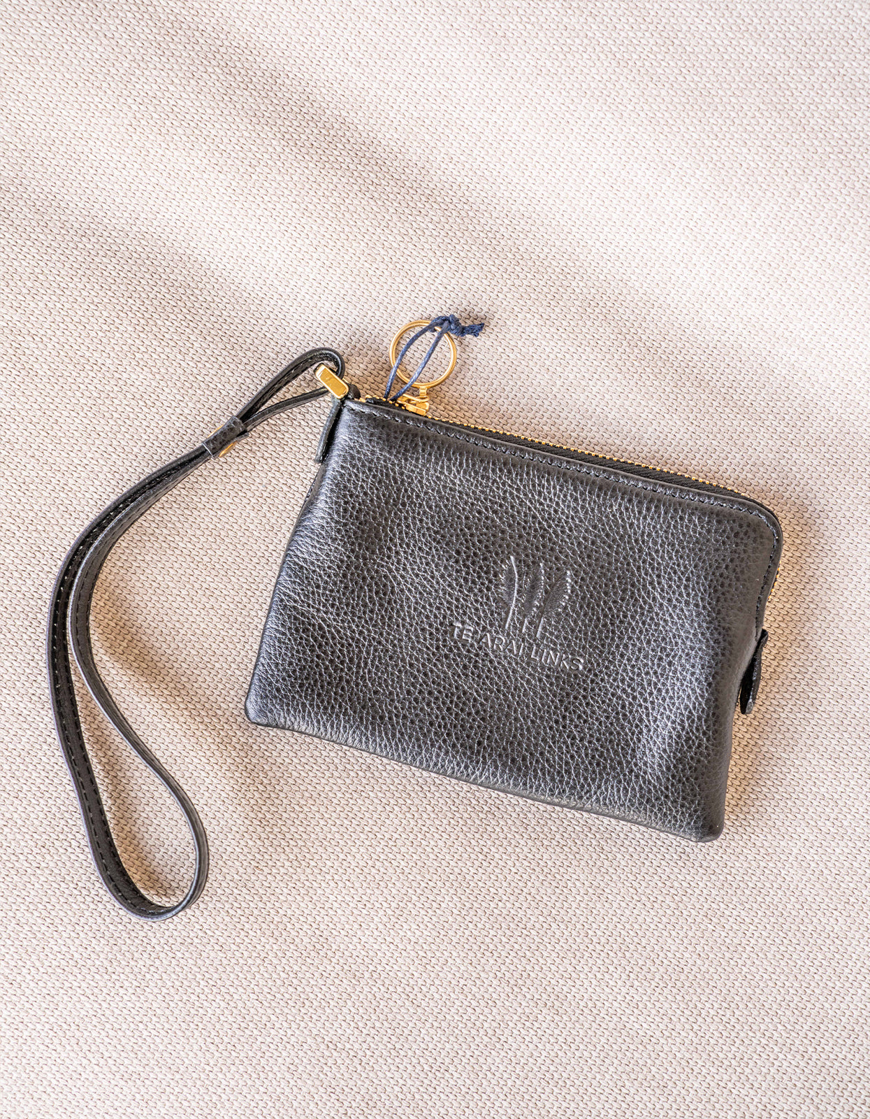 Premium small zipped pouch with wrist strap, perfect for holding the essentials. Features the Te Arai Links logo.